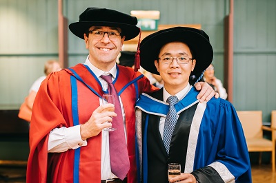 December 2016 - Dr Guanchang Wu passed his PhD examination with glowing comments from the examiners. His project was on understanding the abrasion mechanisms that are found in tyres. His project was sponsored by Cabot in the USA and in the last few months he has been working on a related project with SRI in Japan. His supervisor, James Busfield, commented that his examiners were very impressed with the amount of work that Chang has undertaken during his PhD. (The photo is taken at graduation in July 2017)